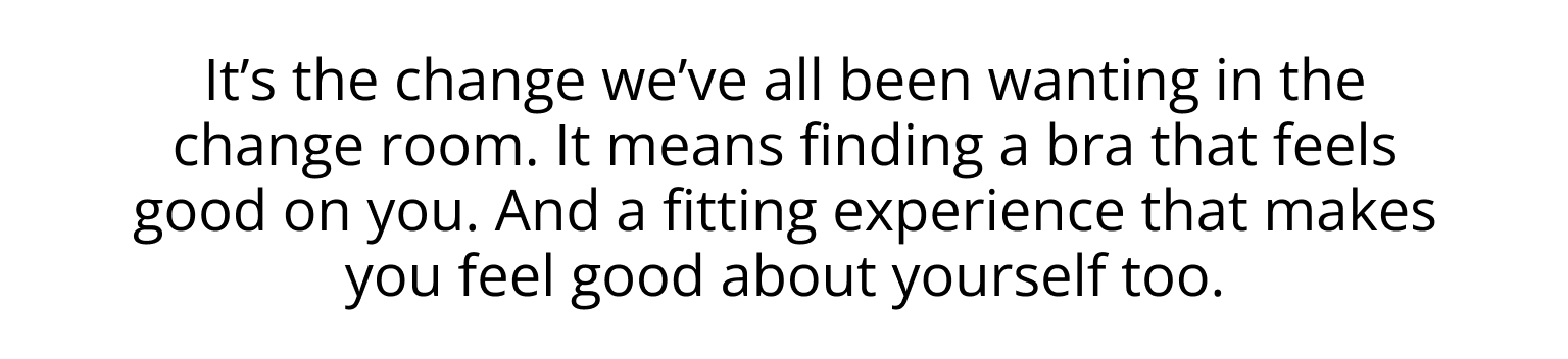 We're changing the changroom experience for good. In-store, online and everywhere throughout your changing life. We will be announcing new and interesting ways we are changing the bra fitting experience.